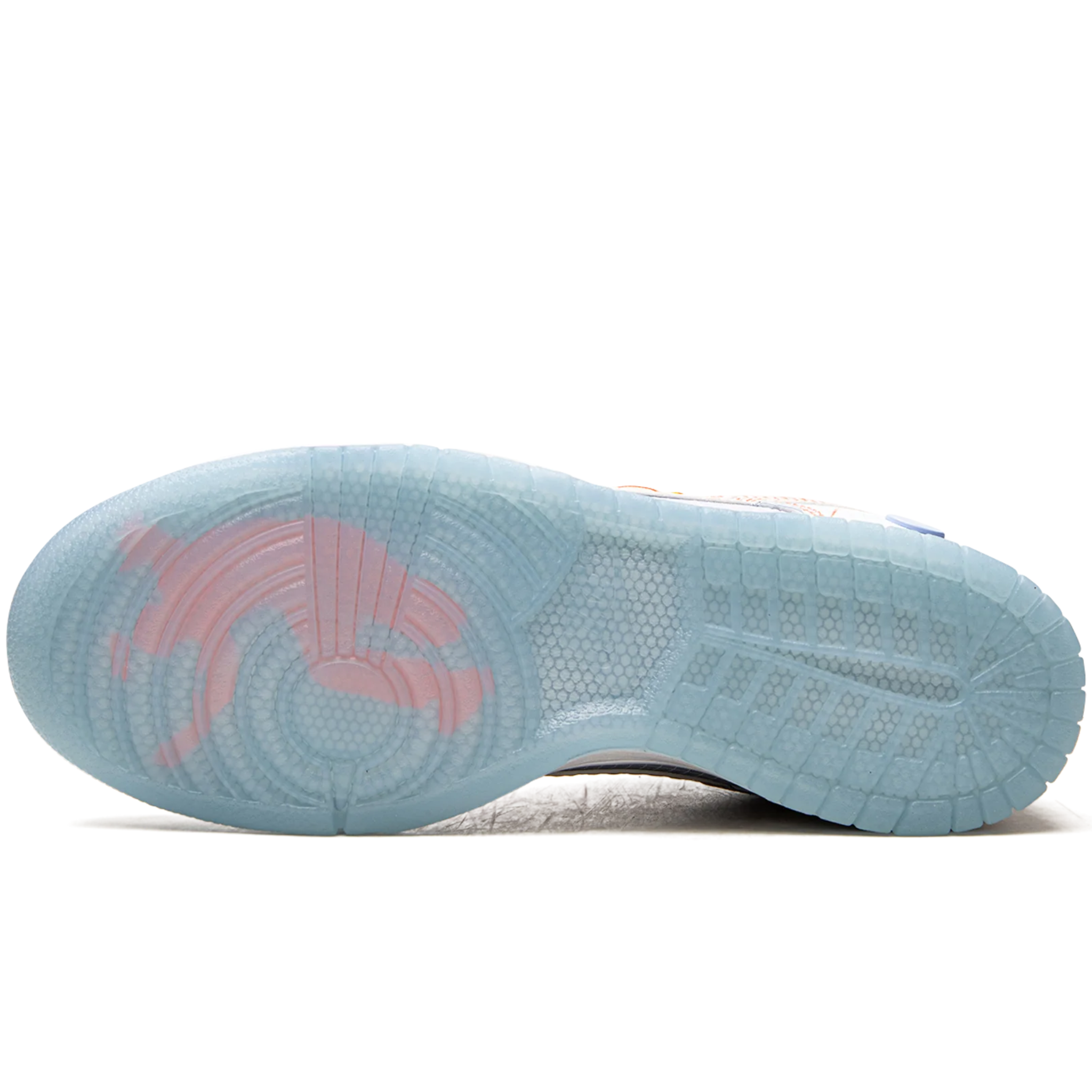 O cabedal apresenta um material sintético translúcido com efeito grid, revelando camadas internas coloridas que criam profundidade e identidade ao tênis. A combinação do azul Hyper Royal com detalhes em amarelo e costuras contrastantes entrega um visual ousado e moderno. A clássica sola em borracha mantém a estética tradicional do Dunk, enquanto o logo da Union aparece discretamente em etiquetas personalizadas e no icônico tag pendurado estilo bilhete de viagem.