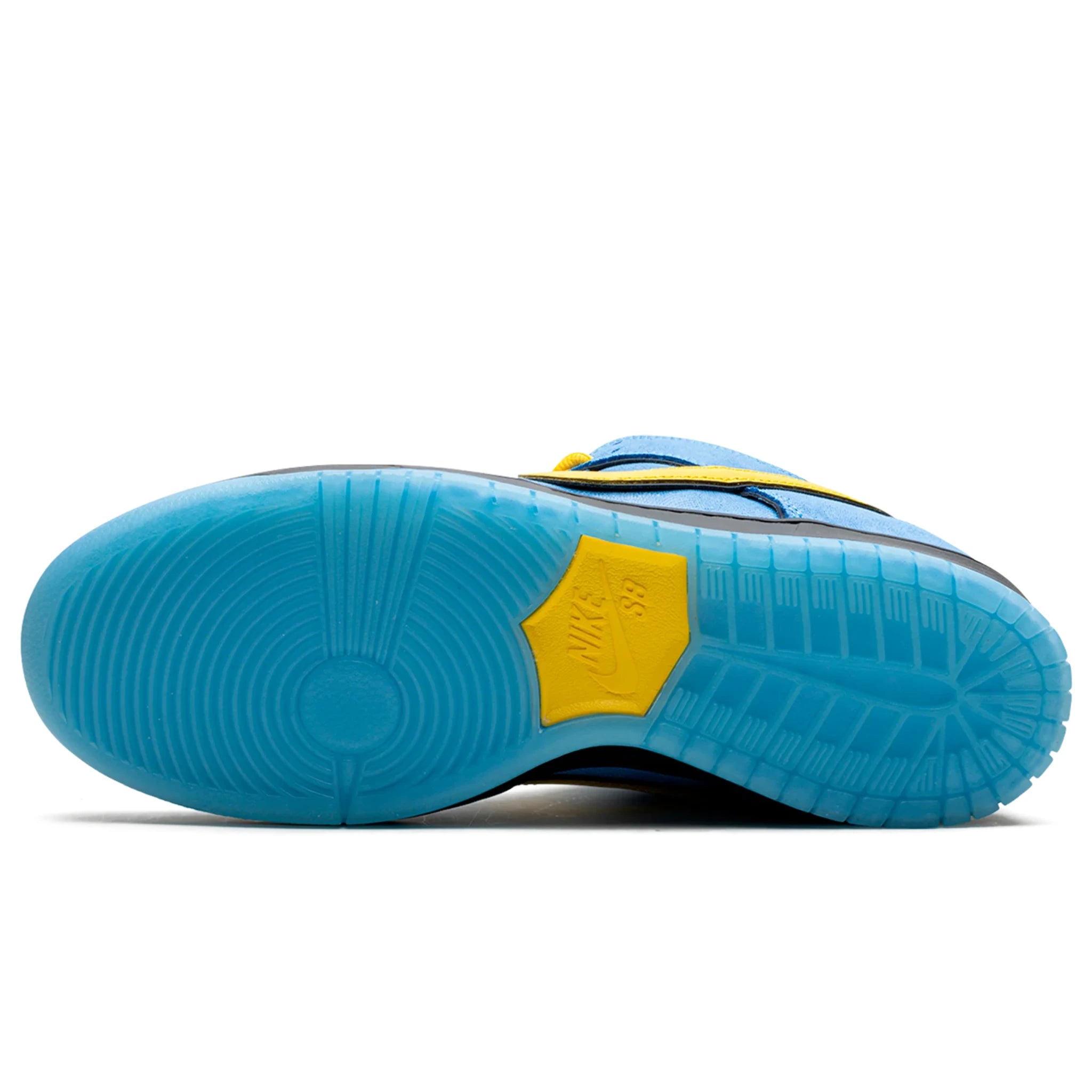 O cabedal traz tons de azul claro translúcido, remetendo diretamente à estética da personagem, com acabamento brilhante que lembra o visual animado do desenho. Os detalhes em preto criam contraste e reforçam o DNA clássico da linha SB Dunk, enquanto o solado garante aderência e durabilidade para o dia a dia ou sessões de skate.